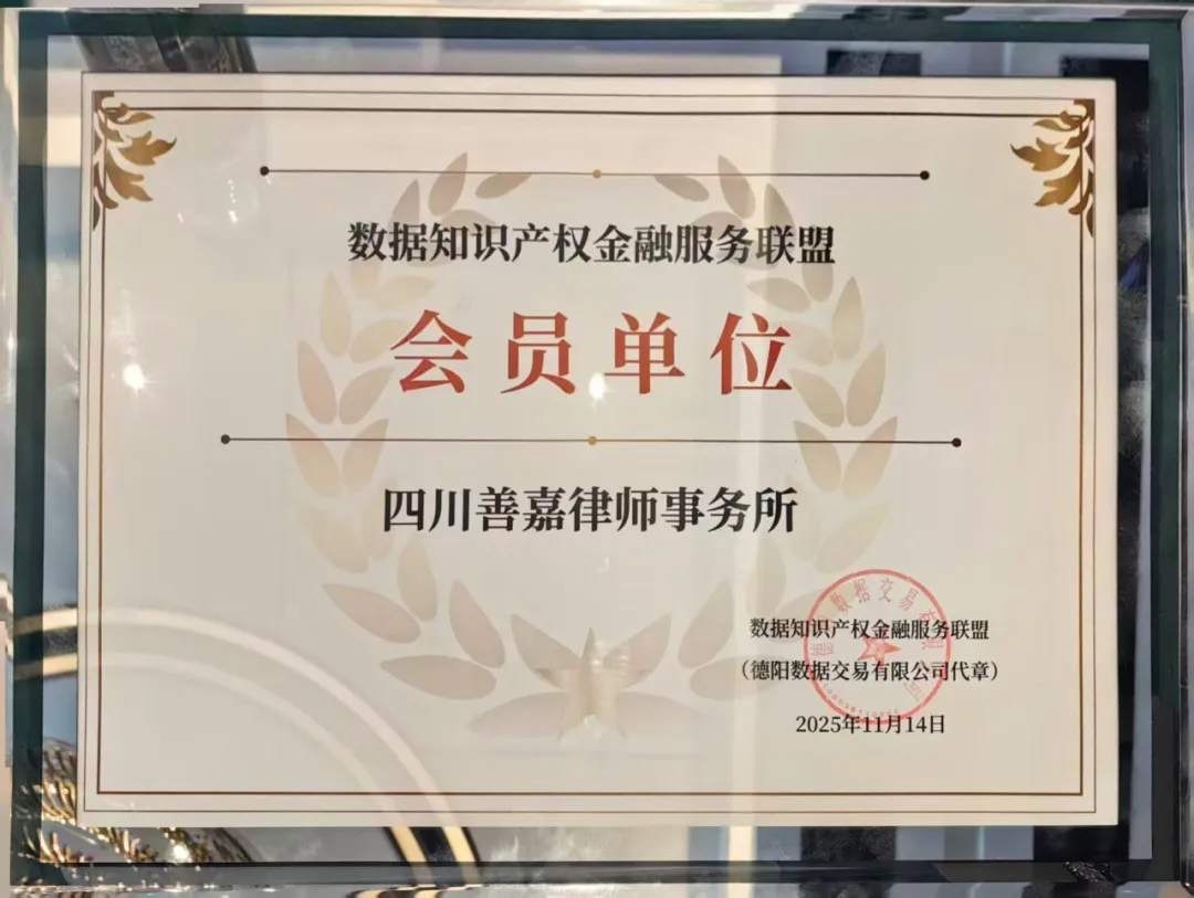 2025年11月14日,四川(德阳)数据知识产权交流会暨数据知识产权金融服务联盟成立大会在四川德阳隆重召开。善嘉律师事务所受邀参会,成为该联盟的首批会员单位,共同投身于数据要素金融化的创新实践。